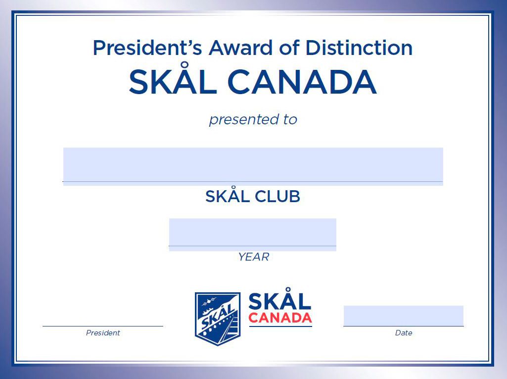 Skål International Canada just concluded the second year hosting our club recognition program titled ‘President’s Awards of Distinction’ (PAD’s).