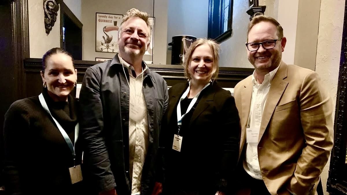 Quai du Vin Estate Winery Team: Tina Umbelina (member, Brand Ambassador), Jay Johnston (Winemaker), Annette Lee (member, Retail Sales & Hospitality Coordinator), Russ Press (General Manager).