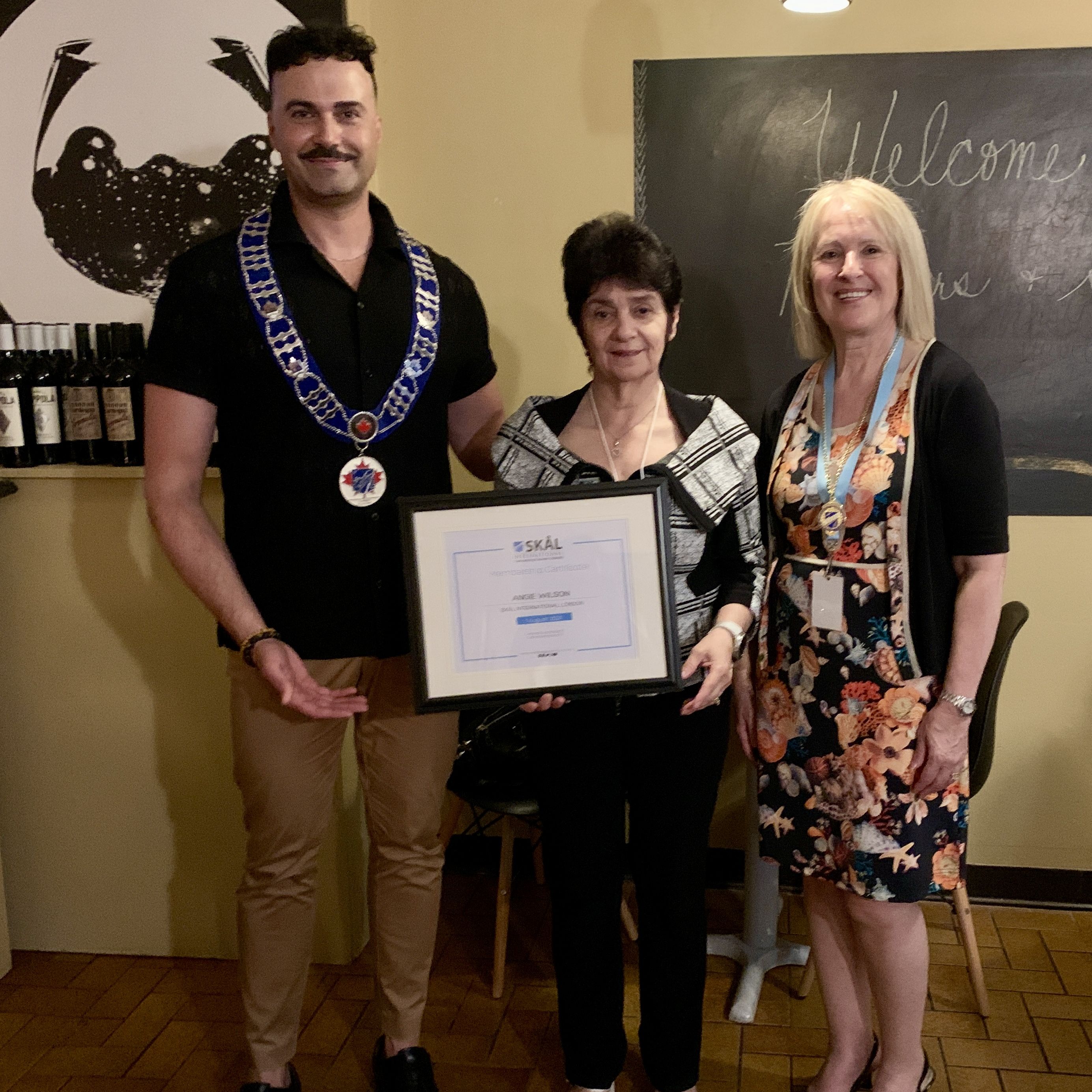 That evening one of their newest members Angie Wilson, successful entrepreneur & wonder of Gift Baskets by Design, was welcomed to Skål International at their Member Induction Ceremony.