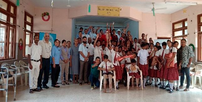 Director Young Skål Sk. Carl Costa of Skål International Charles Bonifacio and Shekhar Divadkar with Young Skål Members distributed Christmas goodies to inmates of Peace Haven, Caranzalem, Goa.