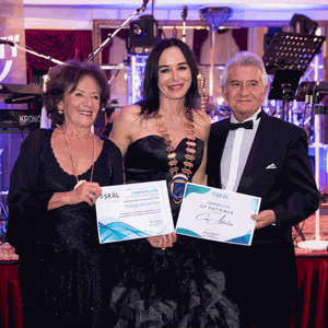 President Burcin Turkkan presented the Skål Order of Merit, Skål International Ambassador, Skål International Lifetime Achievement, and Certificates of Appreciation.